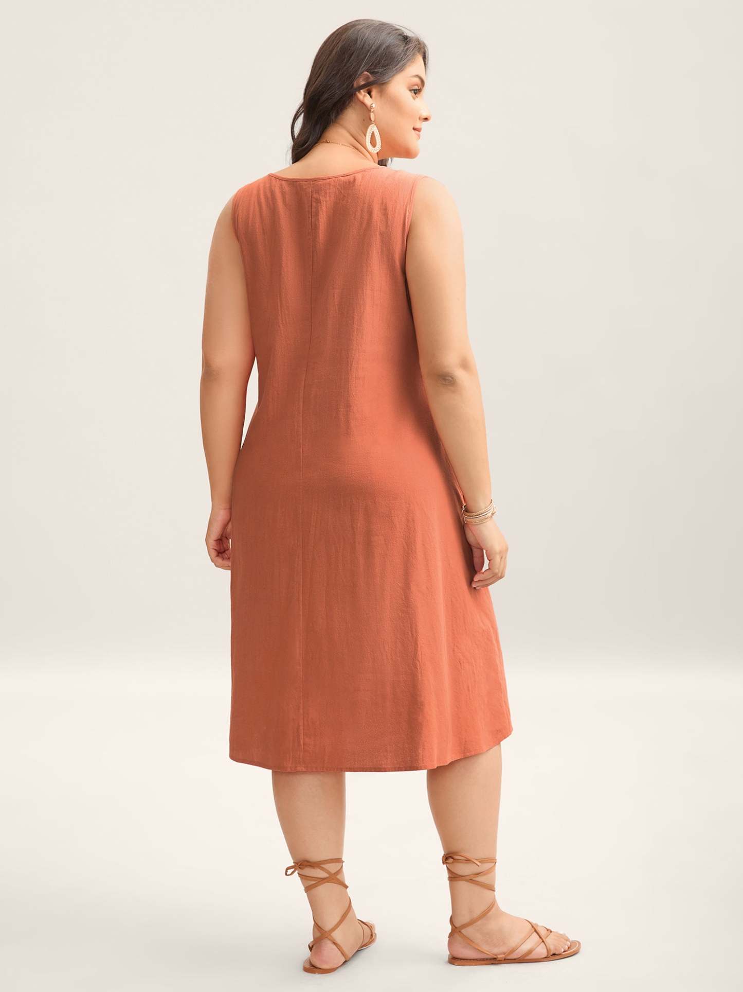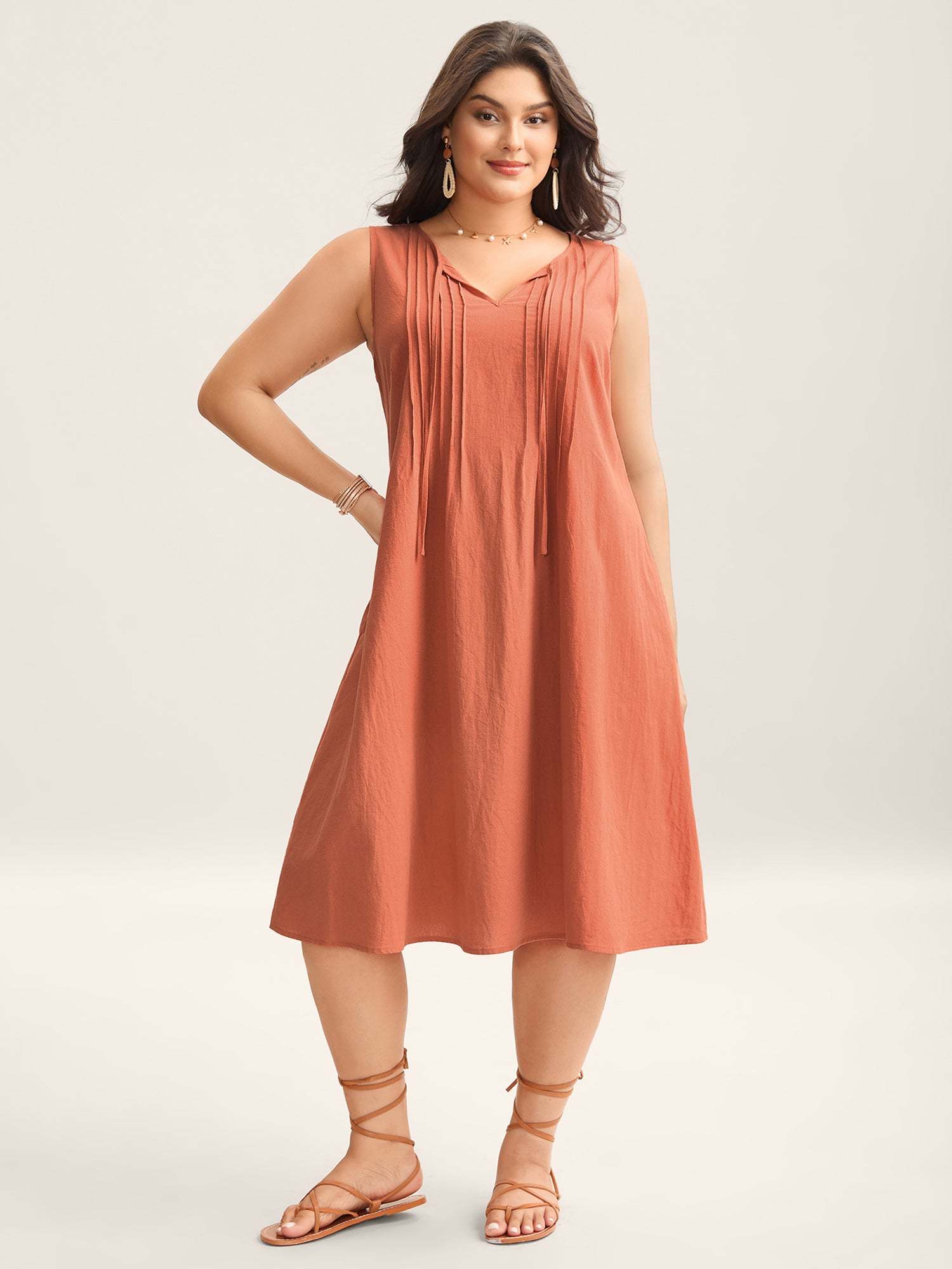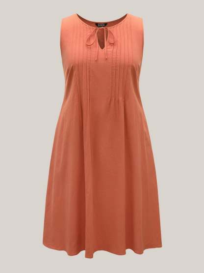 Cotton Toothpick Pleat Plain Midi Dress