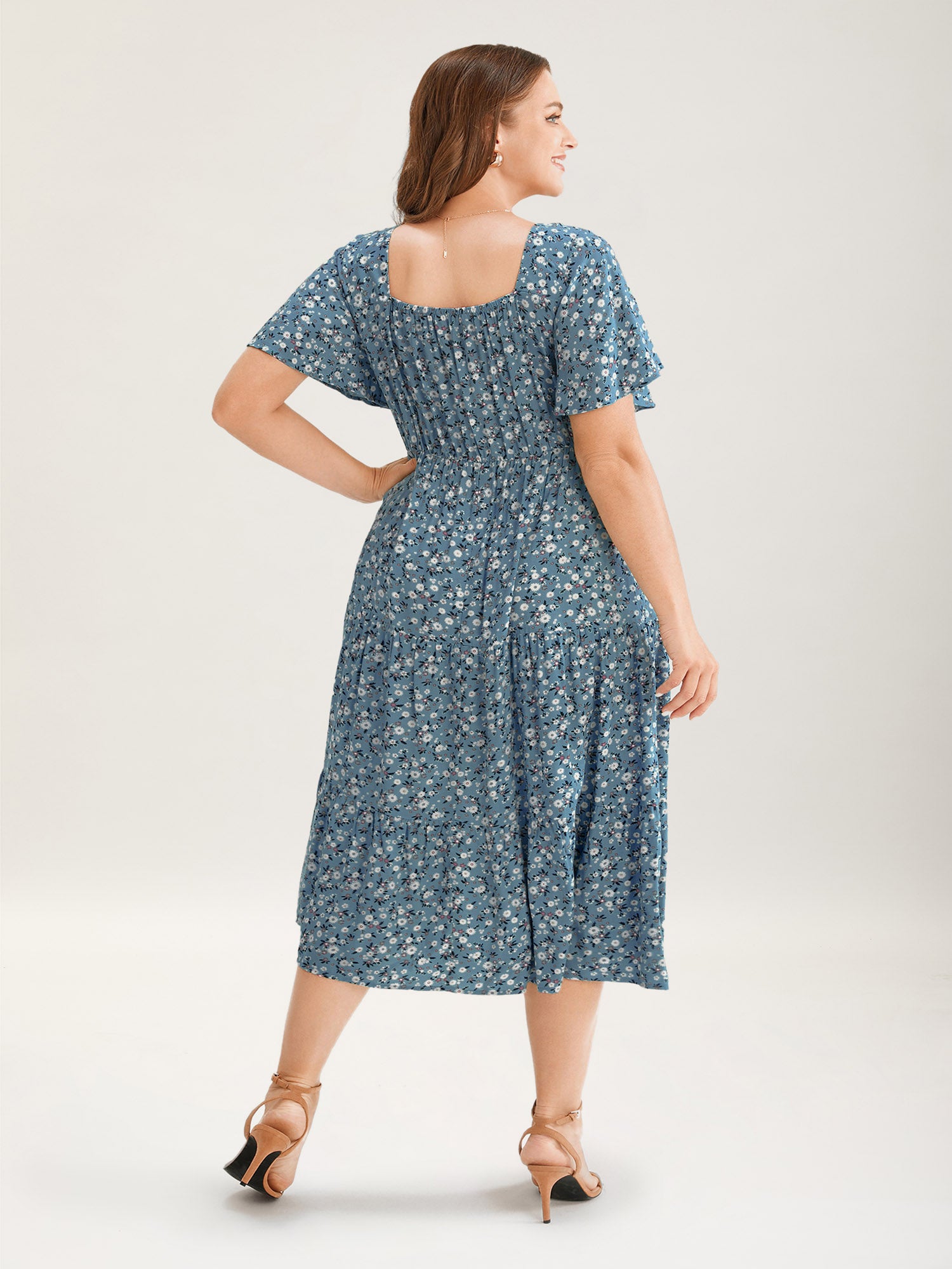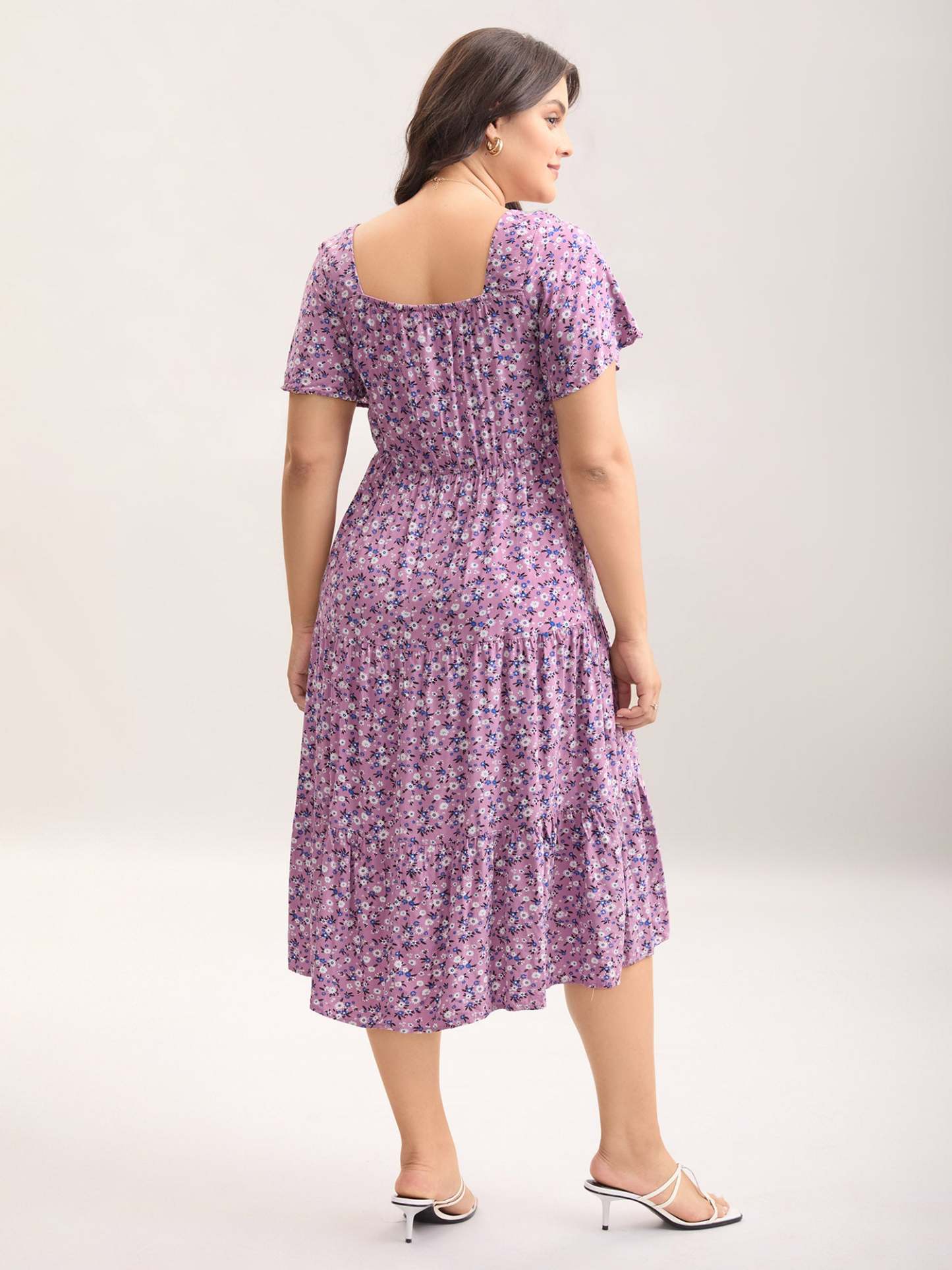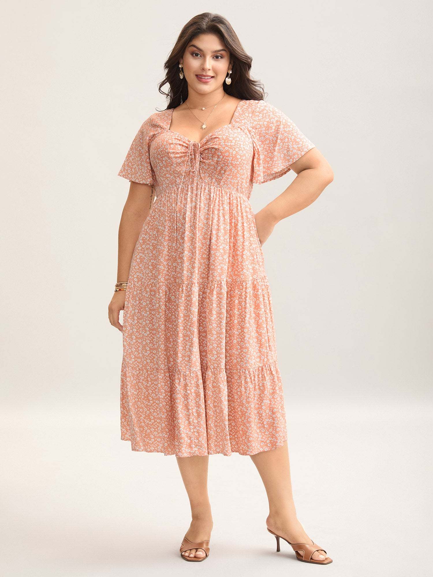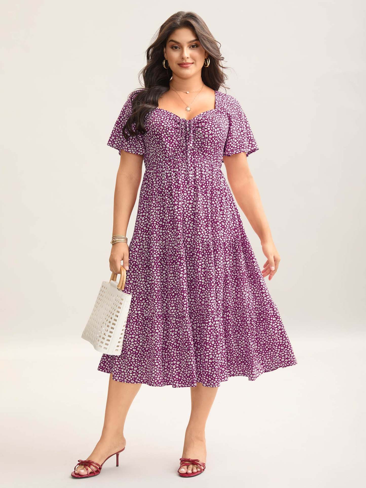 Ditsy Floral Sweetheart Drawstring Pocket Tiered Dress