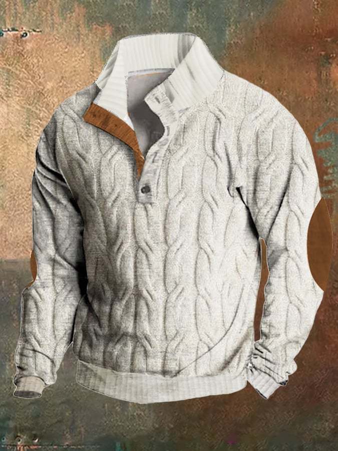 Men's Casual Color Block Knitted Jacquard Stand Collar Pullover Sweatshirt