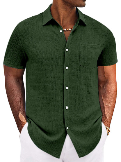 Men's Casual Simple Solid Color Texture Short-sleeved Button-down Shirt
