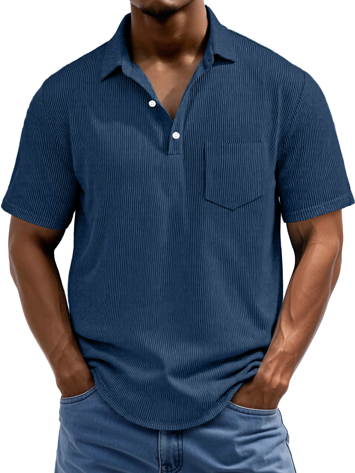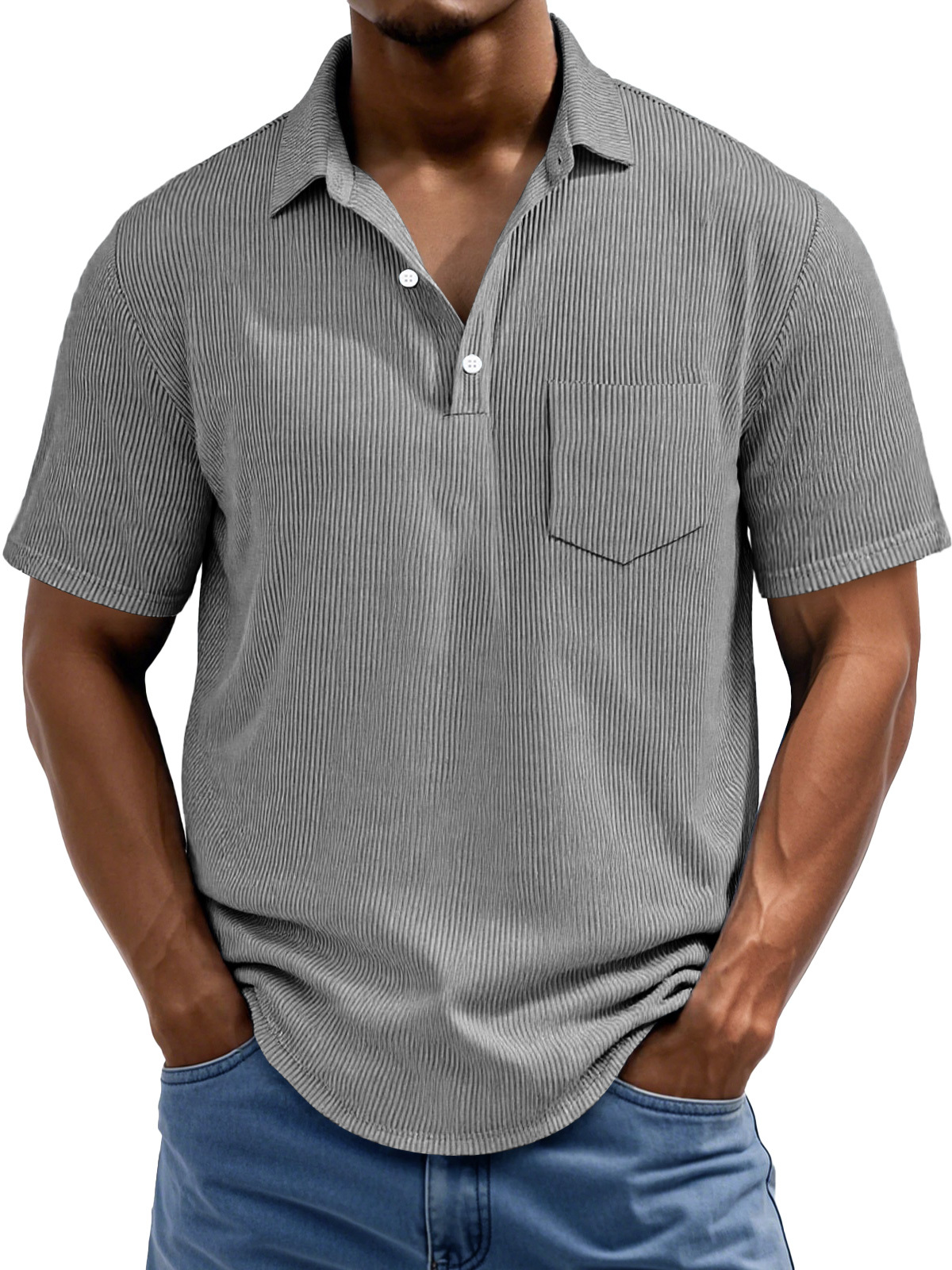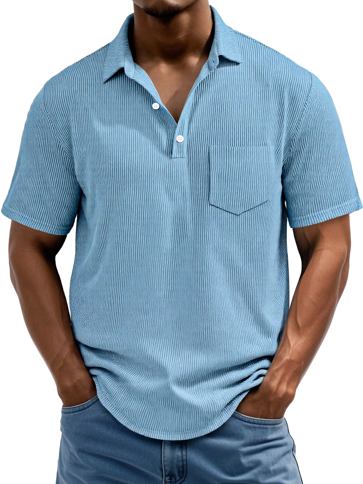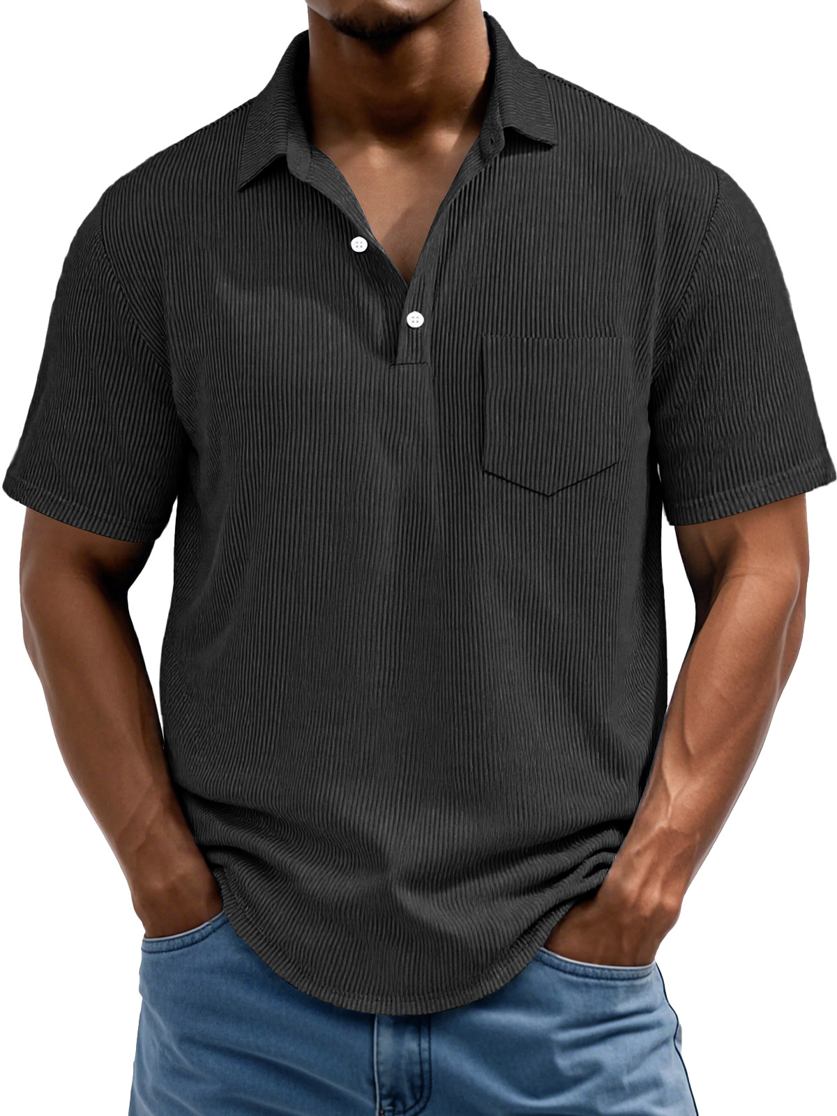 Men's Daily Rip Texture Casual Lapel Button Pocket Short Sleeve Polo Shirt