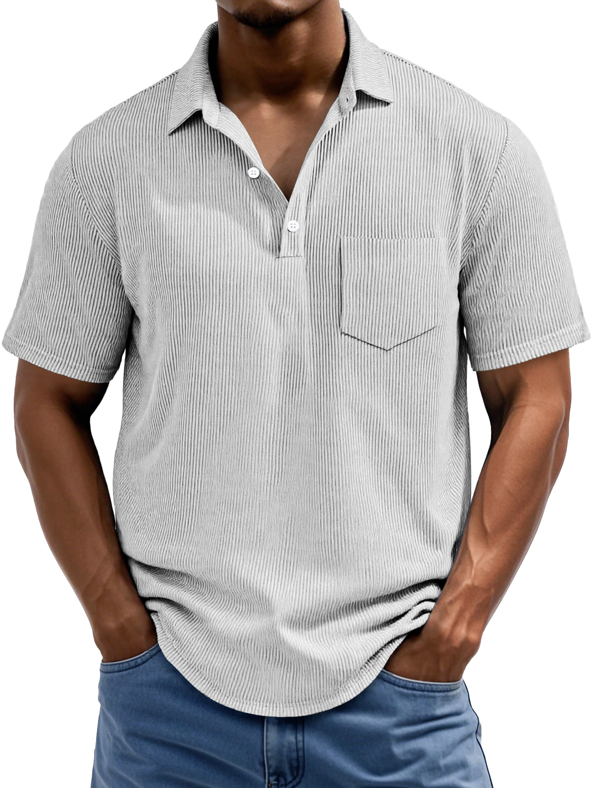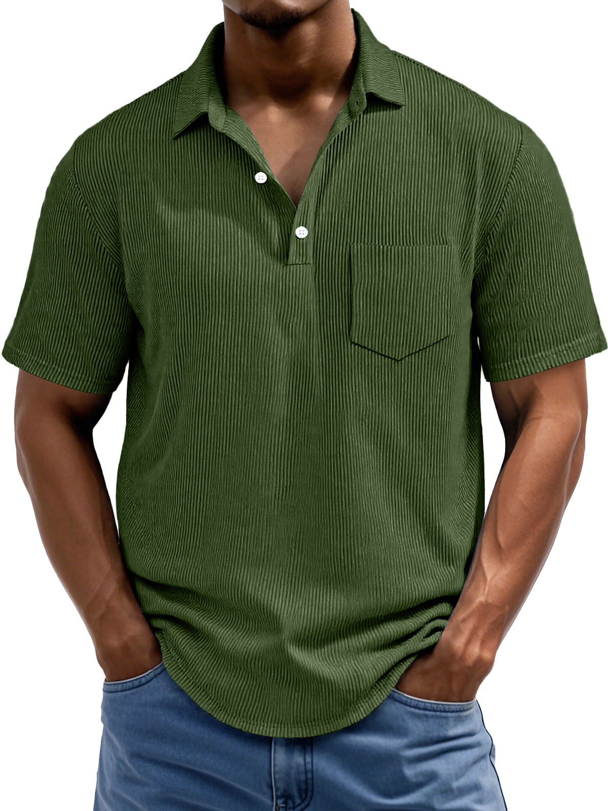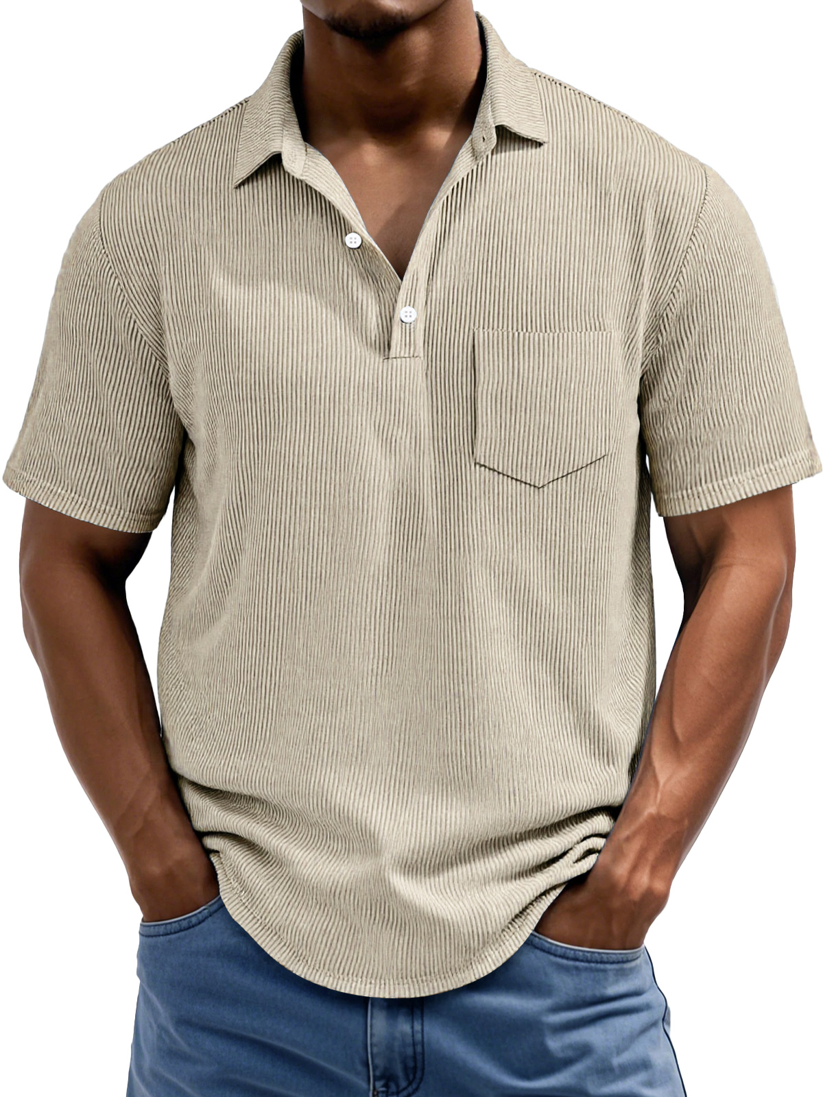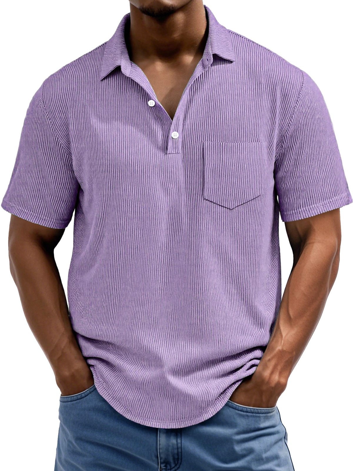 Men's Daily Rip Texture Casual Lapel Button Pocket Short Sleeve Polo Shirt