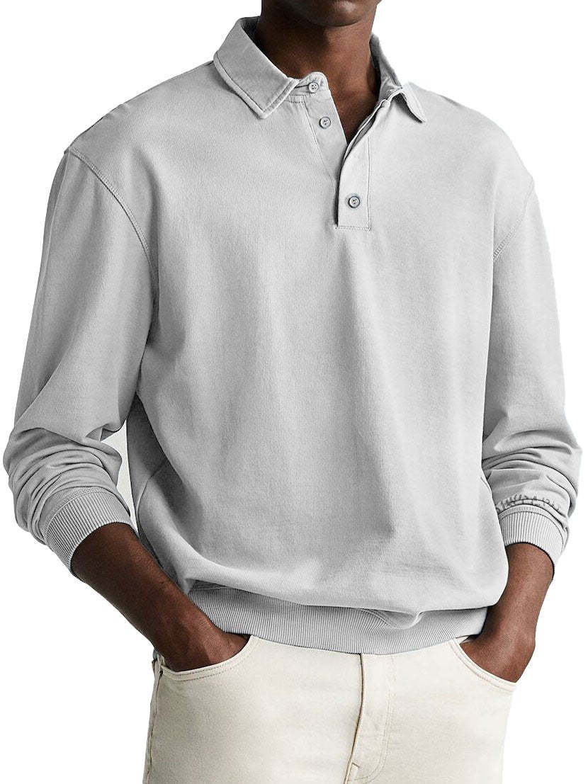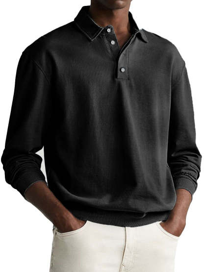 Men's Retro Distressed Comfortable Long Sleeve Lapel Polo Shirt