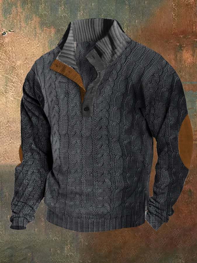 Men's Retro Simple Casual Color Block Stand Collar Sweater