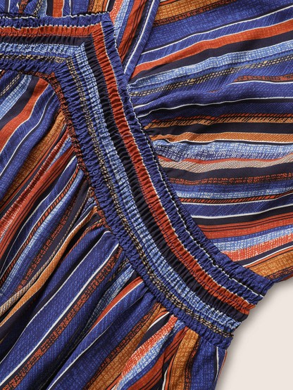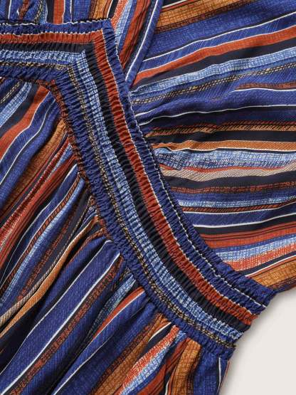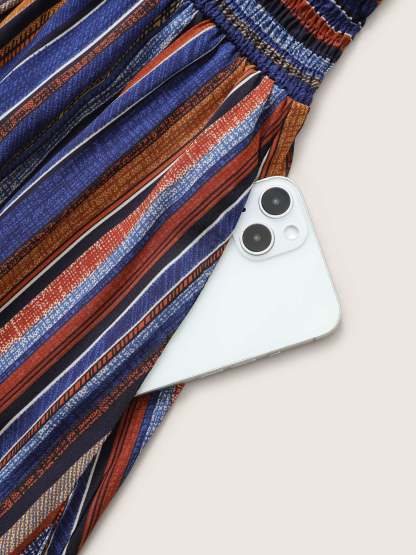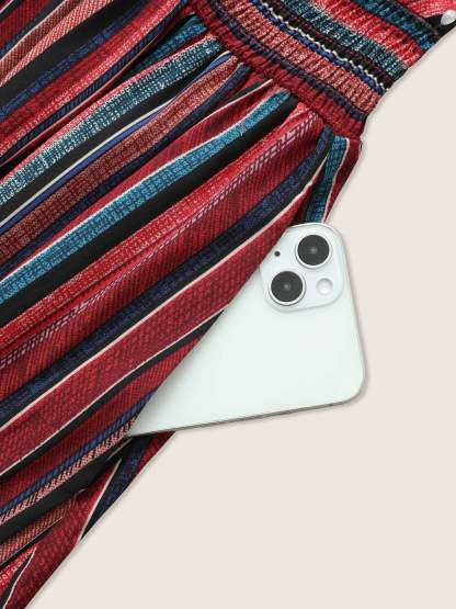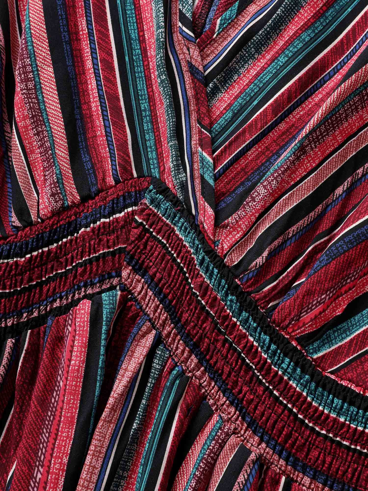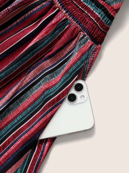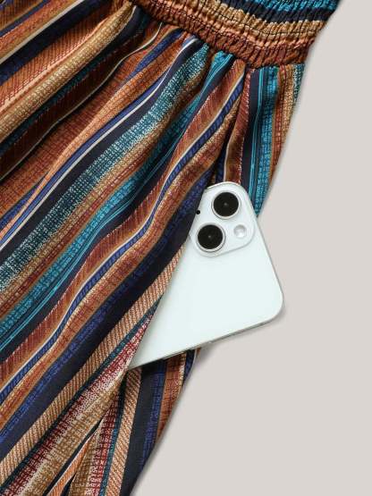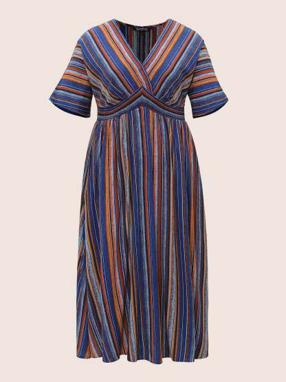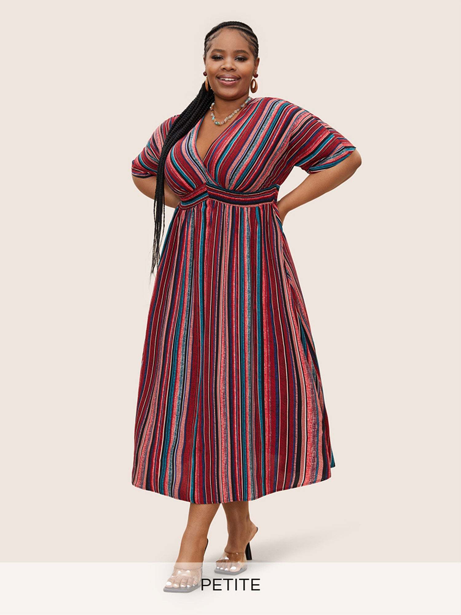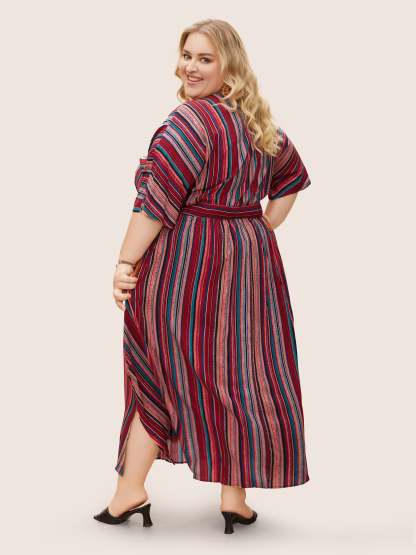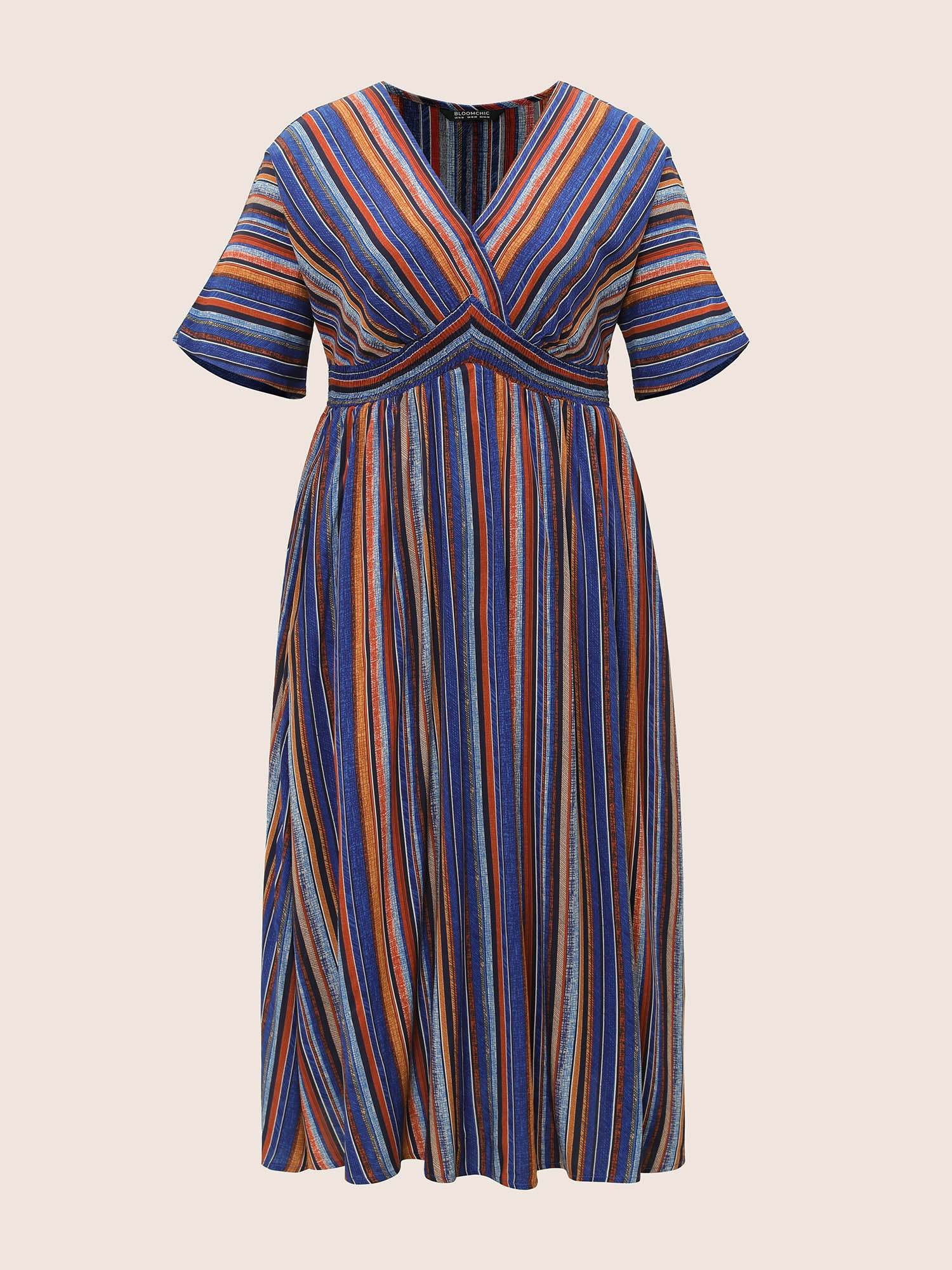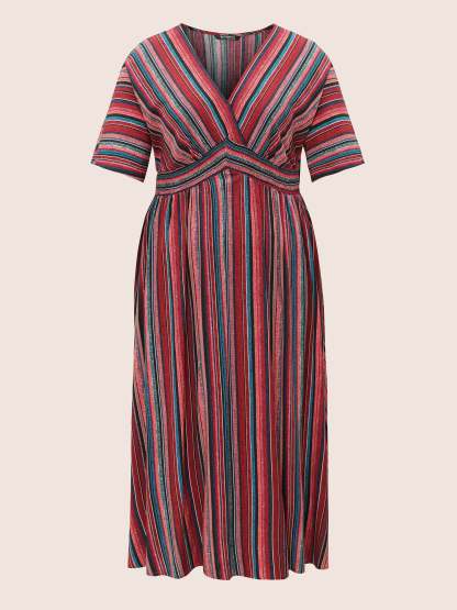 Striped Contrast Dolman Sleeve Shirred Pocket Split Flutter Dress